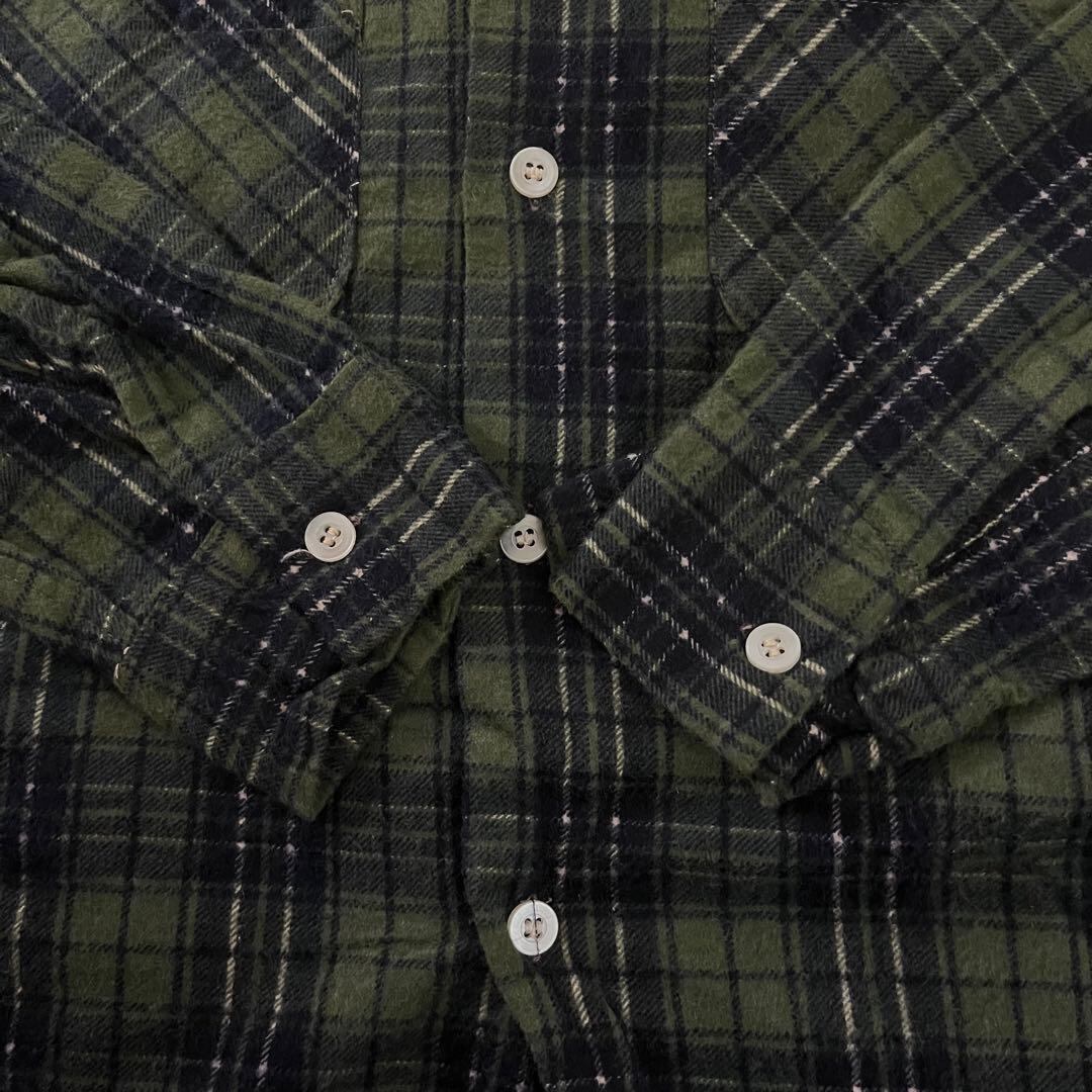 80s 90s ヴィンテージ ネルシャツ Murtag チェック 長袖 アメカジ 古着 グリーン ネイビー ヘビネル グランジ オンブレ ボックスシルエット