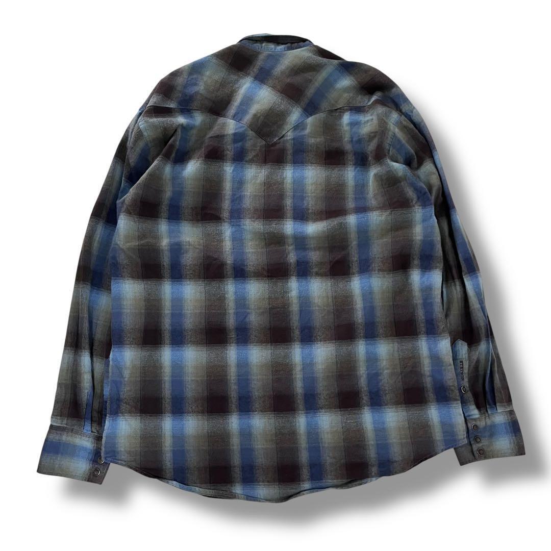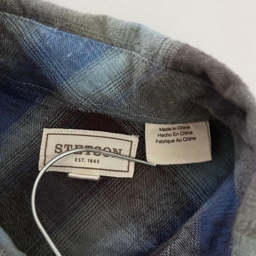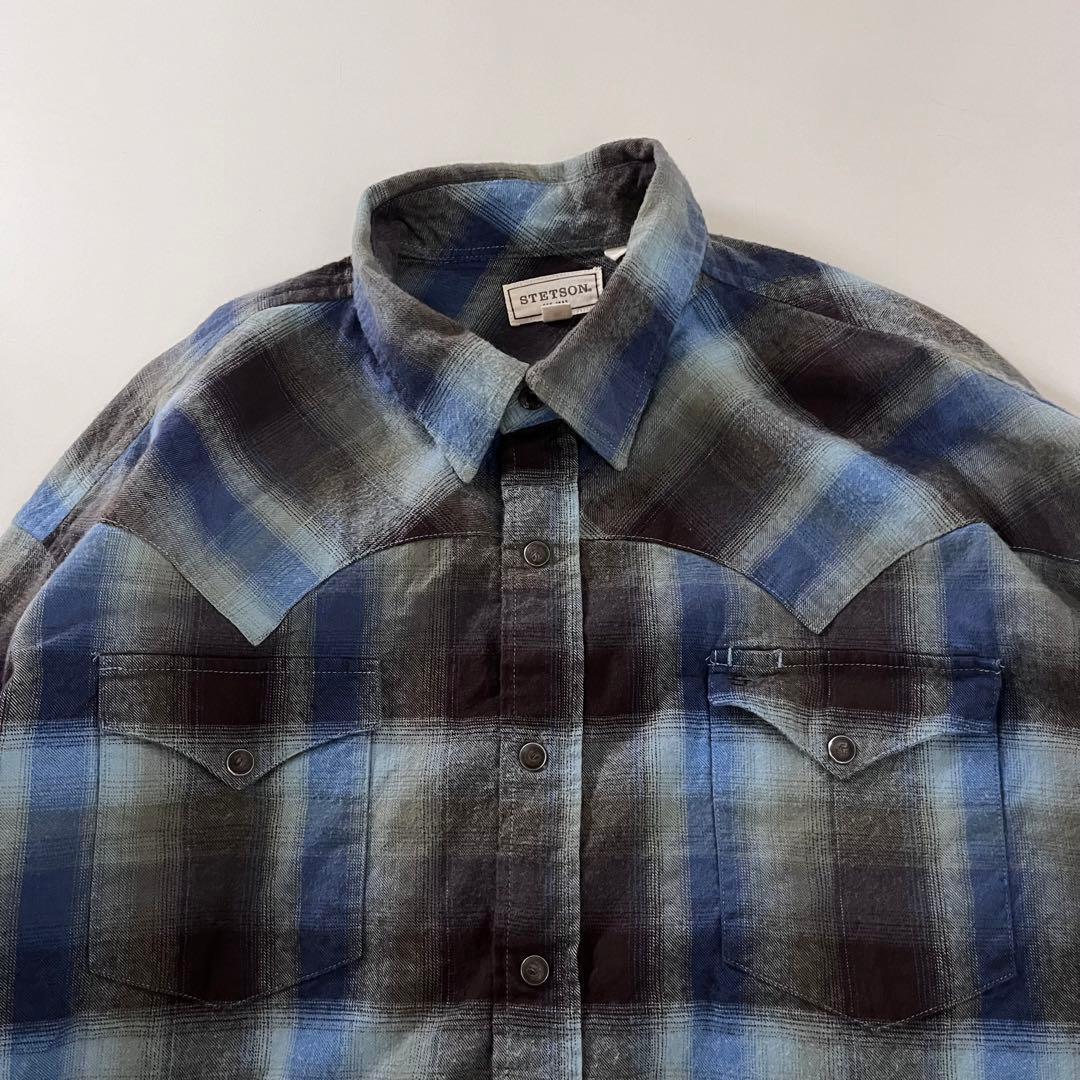 美品 STETSON ウエスタンシャツ XL オンブレチェック 古着 ブルー